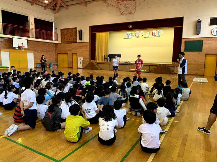当日は、サムライジャパン 大橋雅貴 選手、さくらジャパン 小野真由美 選手が参加し、全校生徒に対してホッケーの実技披露を含めたホッケー教室を行い、東京2020に向けた機運醸成に努めました。